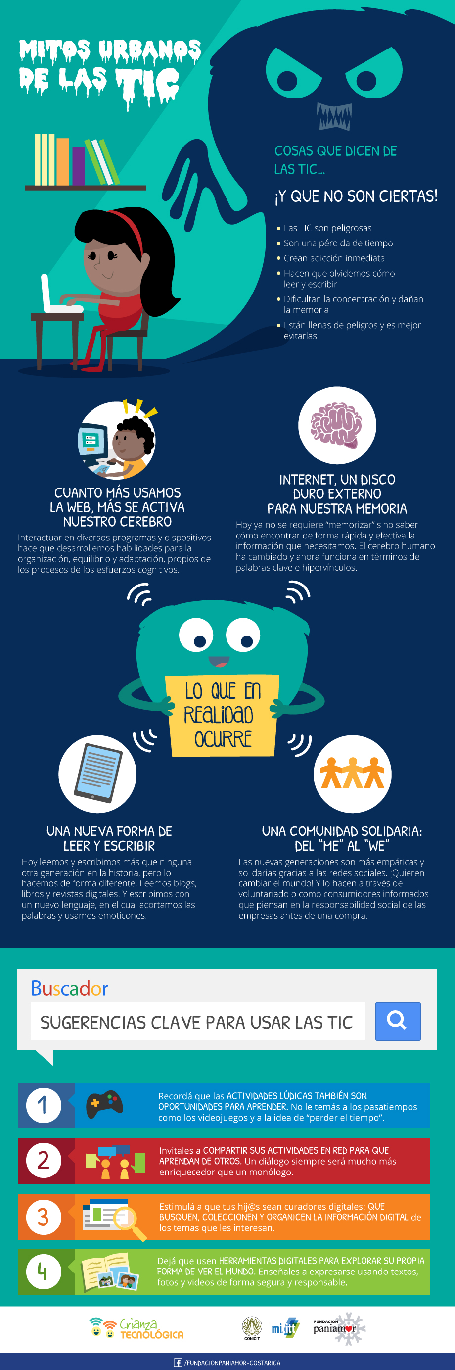 Infografía que presenta las mitos más comunes sobre las TIC, así como las ventajas de su uso....